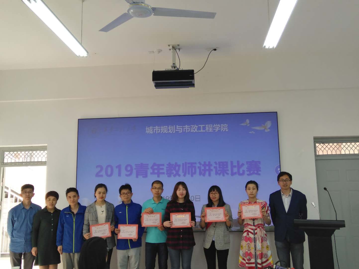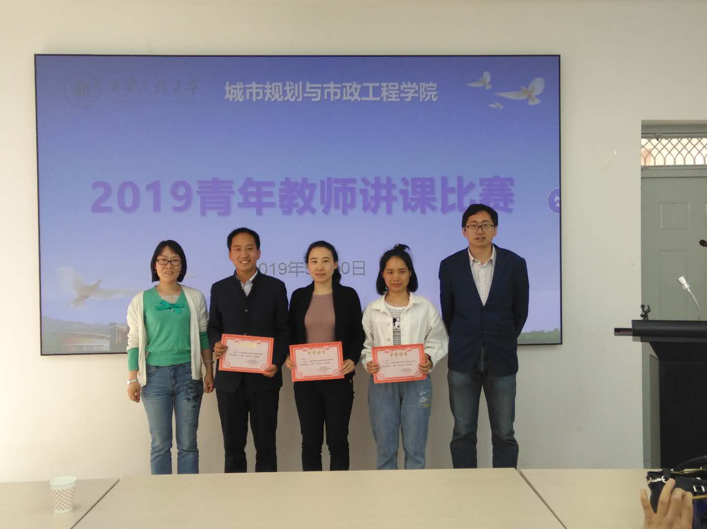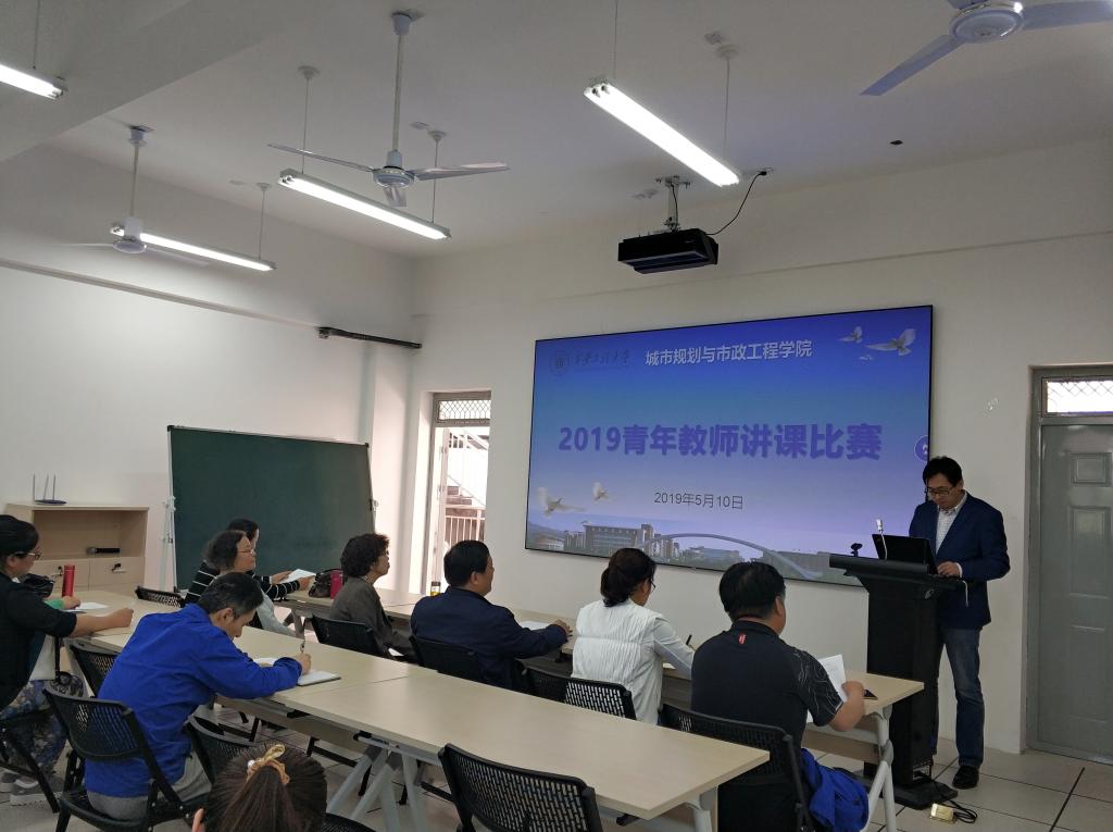 为遴选西安工程大学第十六届青年教师讲课比赛人选,城市规划与市政工程学院于2019年5月10日进行了院内讲课比赛初赛。学院45岁以下教师全员参赛,讲课比赛分三组进行。评委由院长马云、书记杨友谊、副院长房平及教师代表段炼孺、杨靖、颜苏芊、王玲、郑君芝、申永康、仲伟秋等12人组成,比赛邀请刘瑞霞与成爱武老师作为学院外聘评委。