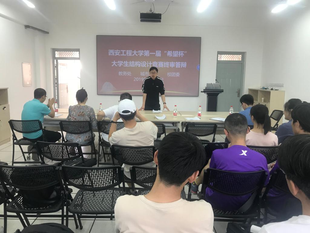 5月24日上午,由教务处、校团委和城市学院共同主办的第一届“希望杯”大学生结构设计竞赛终审答辩在8号楼322会议室举行。学院杨涛、葛明兰、仲伟秋和赵浩四位老师担任大赛评委,学院副院长房平、学工办主任凌旭也参加了本次活动。