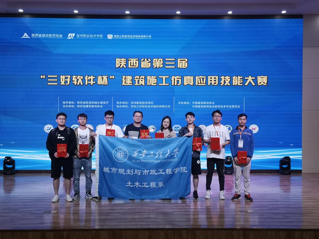 2019年6月1日,陕西省第三届“三好软件杯”建筑施工仿真应用技能大赛在宝鸡职业技术学院举行,城市规划与市政工程学院土木工程专业学生首次参加此次比赛,与来自省内外33所院校学子同台竞技。比赛共分为建筑工程专业知识问答、装配式建筑仿真实操团体赛和建筑工程模拟实操个人赛。经过一天的激烈角逐,我院荣获团体赛三等奖、个人赛二等奖、三等奖,其中二等级1名,三等奖5名,教师葛明兰、赵浩荣获优秀指导奖。