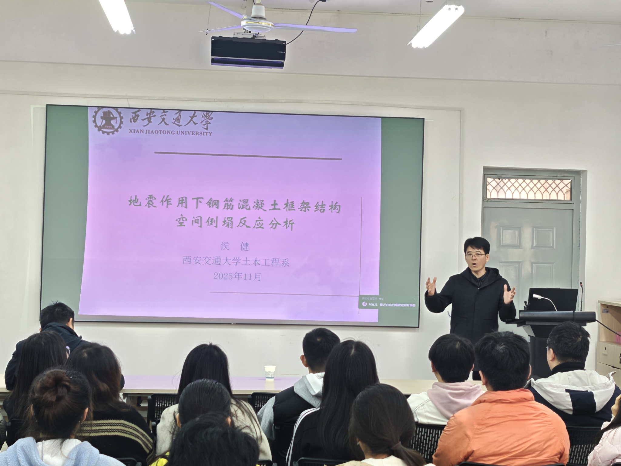 11月14日上午10时,西安工程大学城市规划与市政工程学院“丝路大讲堂”第十一期学术报告在8-322报告厅顺利开讲。本次讲座特邀西安交通大学土木工程系侯健教授担任主讲,以《地震作用下钢筋混凝土框架结构空间倒塌反应分析》为题,为全院师生带来了一场聚焦结构抗震领域的前沿学术分享。