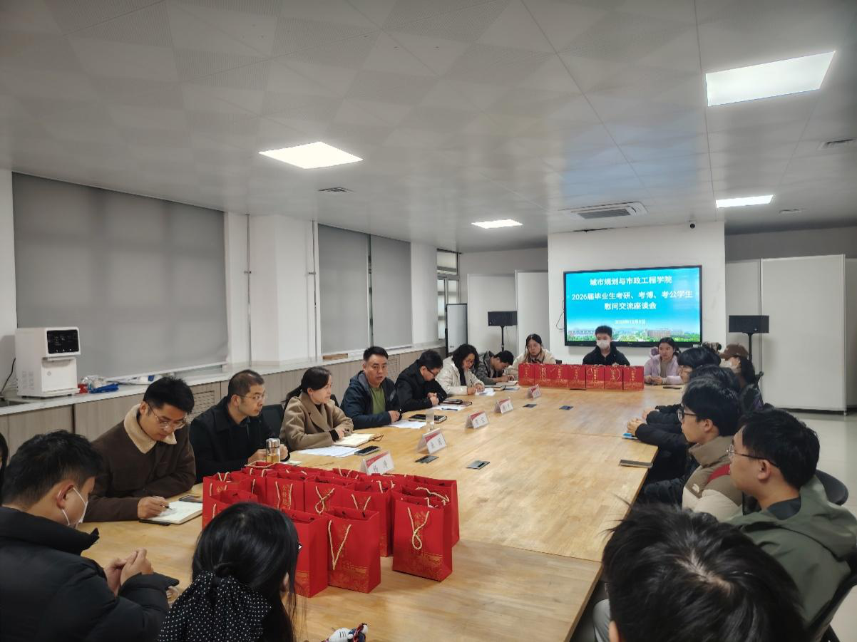 12月5日上午,城市学院在301会议室举办2026届考研考博考公学生慰问交流座谈会。学院党委书记陈宣、副院长(主持工作)房平、党委副书记鱼园、副院长杨涛出席座谈会,与备战各类考试的学子代表亲切交流,送上学院的关怀与鼓励。座谈会由鱼园主持。