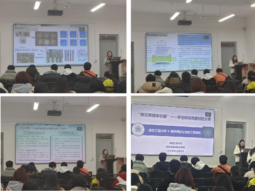2025年12月3日,城市规划与市政工程学院在学院楼322报告厅成功举办“师兄师姐来引路”学术经验分享主题活动。本期活动以“论文写作与学科竞赛”为核心主题,特邀2023级优秀学生代表孙世英和赵娅舒担任分享嘉宾,面向2025级新生传授学术研究与竞赛备战的经验。学院党委副书记鱼园、辅导员赵昊及60余名新生共同参与。